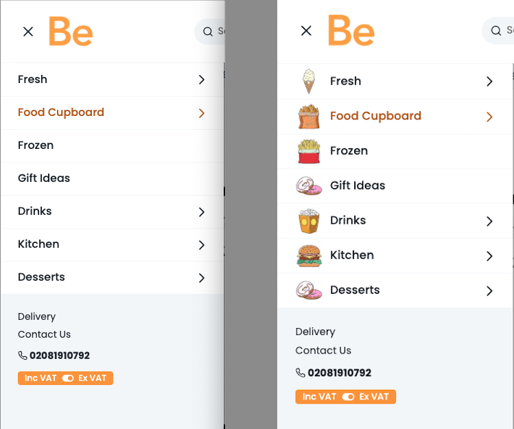 * **Desktop vs Mobile**: The design is almost identical on both desktop and mobile. On desktop, the vertical menu opens on the right and can display up to three levels, while on mobile, it takes up the full height of the screen, with each level opening on a separate page. Despite the difference in how it opens, the overall look and feel remain the same.